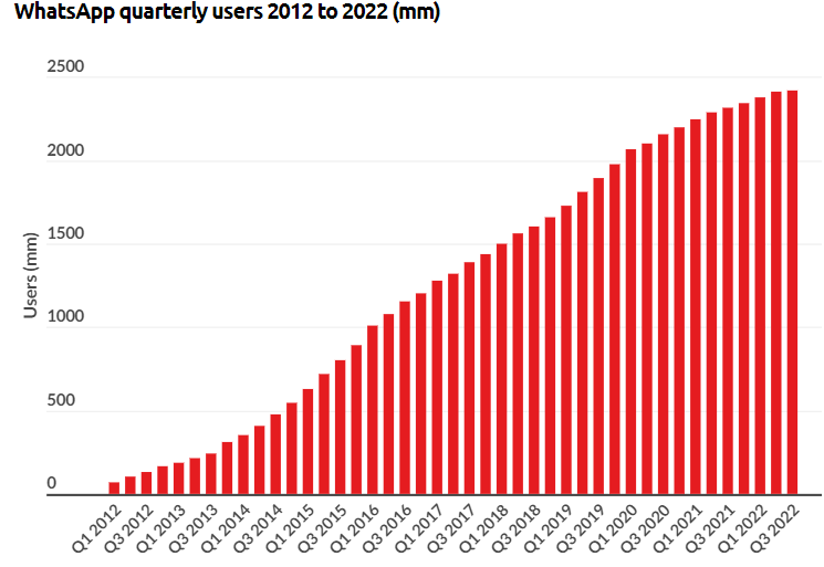 Memanfaatkan WhatsApp sebagai sarana penyebaran informasi dan marketing sangatlah tepat. Berdasarkan laporan Business of Apps, total pengguna aktif WhatsApp secara global telah mencapai 2,41 miliar orang pada kuartal IIIβ2022.